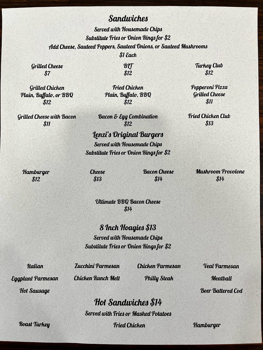 Lenzi's Restaurant Menu (2025 Update)